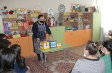 Семинар-практикум для педагогов ДОУ провела воспитатель по обучению татарскому языку Хайруллина Г.Х. Она представила мастер класс на тему: "Дидактические и сюжетно-ролевые игры в рамках УМК "Татарча сойлэшэбез" для закрепления с детьми пройденного материала.