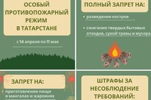 С 14 апреля по 11 мая в Татарстане вводится особый противопожарный режим. Соблюдение ограничений может помочь предотвратить лесные пожары и защитить природу, жилье и инфраструктуру!подробно на странице сообщества МАДОУ_345, "ВКонтакте"