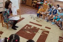В рамках реализации плана месячника Родного языка сегодня состоялась, ставшая уже традиционной, встреча с представителем библиотеки. Алина Разилевна рассказала воспитанникам старших групп о библиотеке, книгах, пригласила посетить библиотеку.