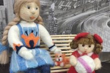 Коллектив нашего детского сада принял участие а районном творческом конкурсе "Эпоха Советского детства". Была представлена композиция"На прогулке". Куклы выполнены в технике - сухого валяния.