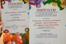 Поздравляем наших педагогов Сушенцева Антонину Алексеевну, Закирову Лейсан Фоатовну, Мустафаеву Елену Николаевну, занявших 1 место и Дёмину Надежду Анатольевну за участие в районном конкурсе «Театральная игрушка своими руками»