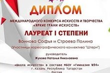 Выпускницы хореографического коллектива "Штерн" Воинова Софья и Строева Полина заняли первое место в международном конкурсе "Яркие грани искусства" в номинации "Творчество на карантине". Поздравляем с победой!