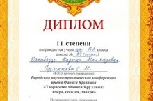 Поздравляем ученицу 10 А класса Какабадзе Карину, занявшую II место в городской научно-практической конференции имени Фаниса Яруллина (научный руководитель Гусманова С.М.), 07.02.2014.