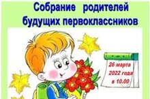 Родительское собрание по вопросам приёма детей в 1 класс на 2022-2023 учебный год состоится 26 марта 2022 г. в 10.00