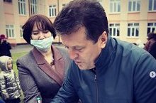 A затем мэр нашего города Ильсур Метшин, совместно с учениками начальной школы, высадили саженцы сосен в школьном дворе. -
