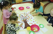 Наши самые младшие воспитанники группы "Планета Детства" с большим удовольствием трудились над созданием коллективной аппликации "Осенний листопад".