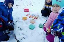 Совсем недавно наши воспитанники совместно с педагогами проводили эксперименты - заливали разноцветную воду в разные формы и замораживали ее. А сегодня коллектив нашего детского сада с большим удовольствием и вдохновением работал на территории, создавая сказочный городок из этих ледяных фигур.