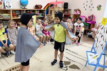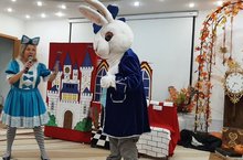 Сказка про Кролика-необыкновенно яркая и полезная! Дворцовый интерьер,Королева,придворный Кролик,который постоянно опаздывал.Кто поможет научить Кролика уважать время,предупреждать,что задерживается? Конечно - Алиса из Страны Чудес, Фокусник-великан и яркие превращения! Представленная сегодня нашим воспитанникам Сказка в исполнении артистов театра "Карнавал" очень понравилась детишкам и по содержанию сюжета и по динамичности))