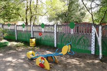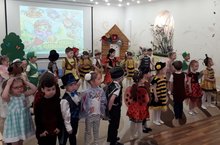 Участок группы "Пчёлки" полностью соответствует названию группы: здесь и улей, и бочонки с мёдом, пчёлы "летают" красивые, выполненные из бросового материала и оформление детской веранды, и клумба - всё выполнено со вкусом. Самое главное - для детей, для полного гармоничного их развития.