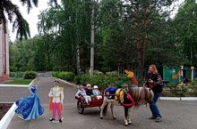 Встречу с пони наша детвора ждёт с нетерпением. Начало лета, день защиты детей - такие хорошие события у нас в "Золотой рыбке" проходят ярко. Все без исключения ребята прокатились на пони, поблагодарили и оставили ему гостинцы - яблоки, морковь, капусту. Продолжили свой день ребята на своих площадках - играли и веселились с друзьми.