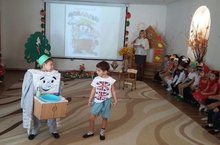 В нашем детском саду начались осенние праздники. На каждом утреннике главная гостья - Волшебница Осень. Она играет с детьми, загадывет загадки, в конце праздника угощает вкусными яблоками..