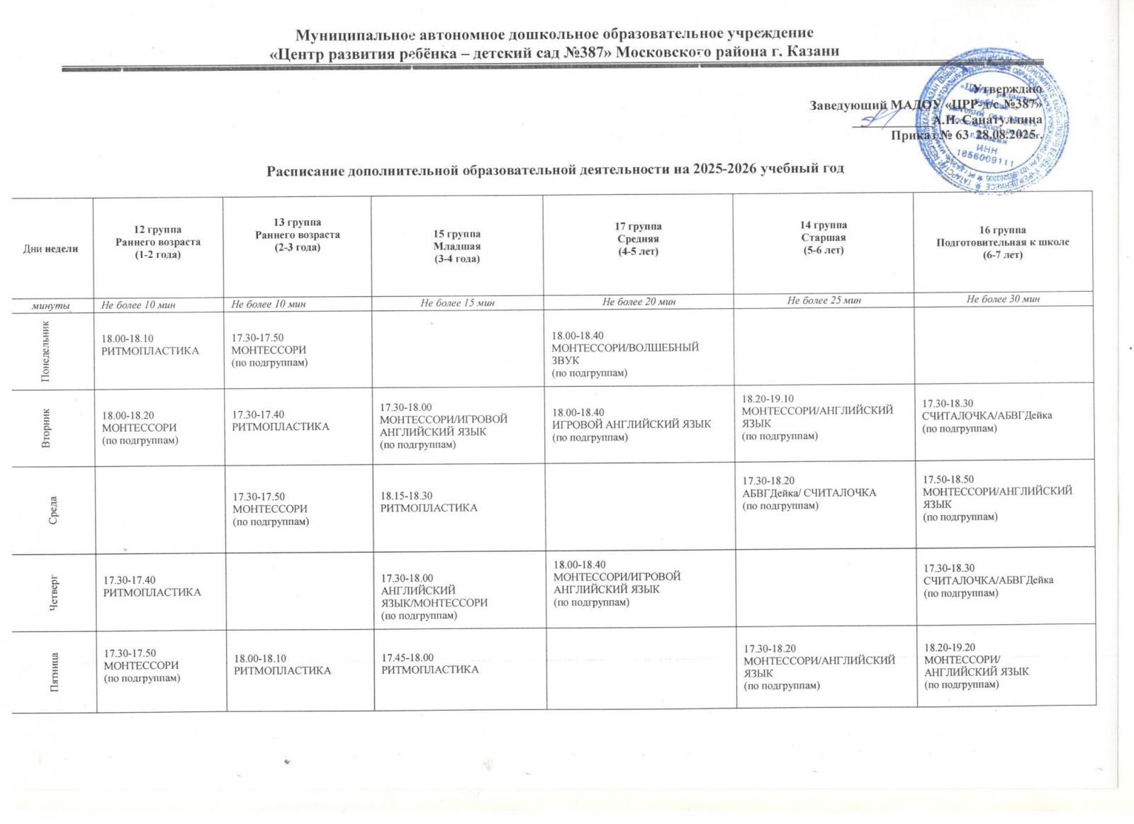 Расписание дополнительной образовательной деятельности на 2025-26 учебный год