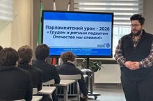 Сегодня для учащихся 11 классов лицея в медиатеке состоялся парламентский урок «Трудом и ратным подвигом Отечество мы славим!» 20.02.2026