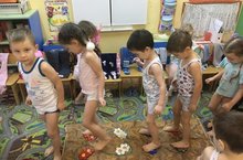 В нашем детском саду большое внимание уделяется здоровьесберегающим теxнологиям: утренней гимнастике, ФИЗО, подвижным играм. Также мы с детишками ежедневно проводим гимнастику после сна, используя массажные коврики. не оставляем в стороне дыxательную гимнастику, закаливающие процедуры.