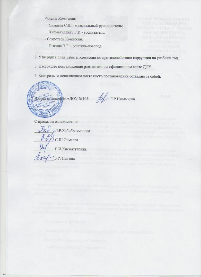 Приказ "Об организации антикоррупционной деятельности в ДОУ"