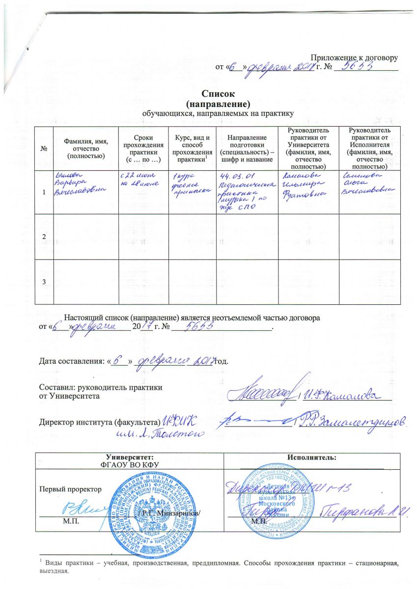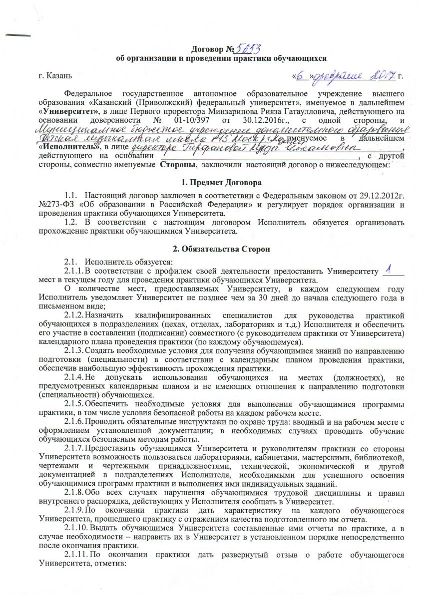 Договор об организации и проведении практики обучающихся между ДМШ № 13 и ФГАОУ ВО КФУ 01, 02, 03, 04, 05