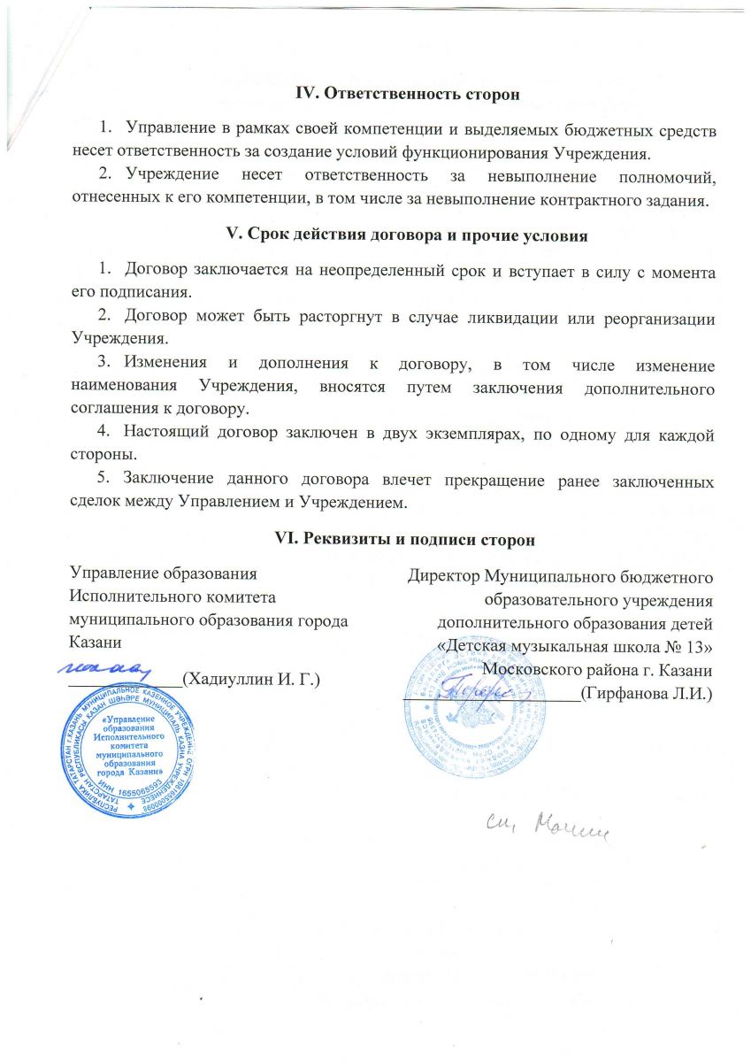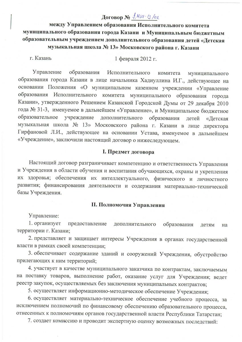 Договор между Управлением образования Исполнительного комитета муниципального образования города Казани и ДМШ № 13: стр. 1, стр. 2, стр. 3, стр. 4