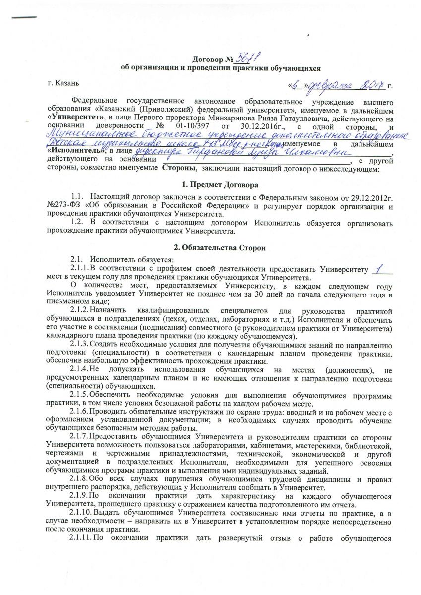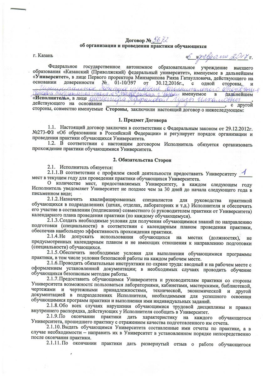 Договор об организации и проведении практики обучающихся в ФГАОУ ВО КФУ: стр. 1, стр. 2, стр. 3, стр. 4, стр. 5