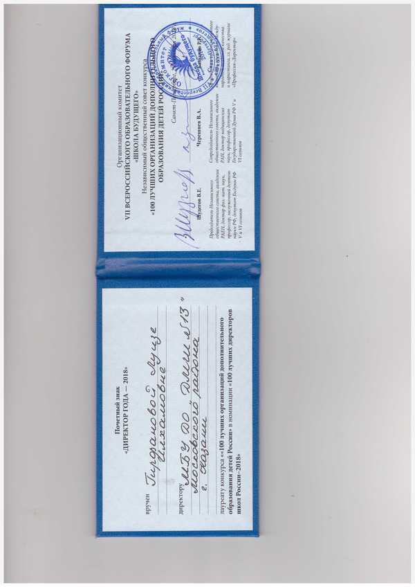 «100 лучших организаций дополнительного образования детей России» Диплом Диплом директора