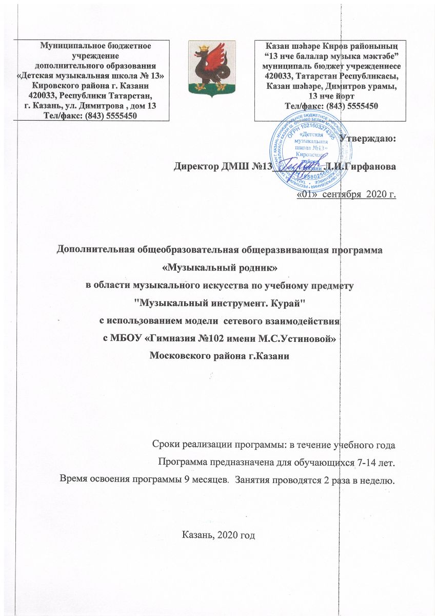 Программа "Музыкальный родник" (курай), реализуемая в гимназии № 102