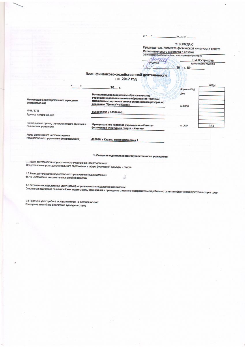 Короткое название: МБУ ДО "СШОР "Дельта" г.Казани