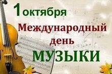 1 октября-Международный день музыки. Праздник отмечается ежегодно во всём мире большими концертными программами, с участием лучших артистов и художественных коллективов. Также проходят творческие встречи с композиторами, исполнителями, музыковедами, организуются тематические выставки и акции просветительского характера, что способствует цели распространения музыки как искусства.