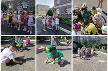 Лето дарит нам прекрасные, солнечные деньки! Сегодня дети нарисовали картину на асфальте "Пусть всегда будет солнце!" В середине картины большое солнце и лучики, которые освещают всё живое вокруг! Получилось очень яркая и красивая картина на асфальте!