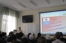 Начался новый учебный год! Поздравляем всех и желаем успехов! Первый урок для всех учащихся был посвящен 20-летию Конституции РФ. Для 8-10 классов Фомина С.А. провела игру-викторину, 5-7 классы со своими классными руководителями посмотрели фильм, учащиеся начальной школы в игровой форме познакомились с основными понятиями Конституции. А назавтра старшеклассники подготовили радио-урок, посвященный борьбе с коррупцией. Послушаем.