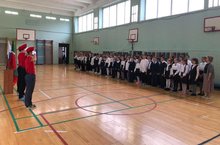 Также ученики старших классов знамённой группы и параллель пятых классов стали участниками традиционной линейки. -