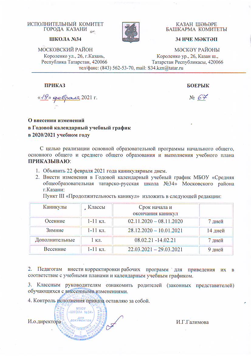 В годовой календарный учебный график внесены изменения. Смотрите по ссылке: "О внесении изменений в Годовой календарный учебный график в 2020/2021 учебном году"