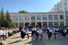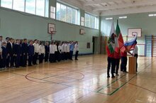 Сегодня в школе прошла традиционная линейка в выносом государственных знамен.