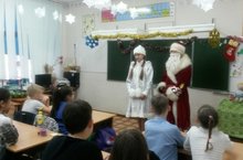 Дед Мороз и Снегурочка поздравили учащихся начальной школы с Новым годом и вручили подарки каждому.