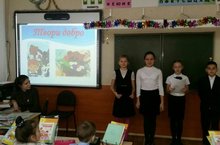 Учащиеся 5 а класс приняли участие в акции " Твори добро" . Ребята выступали в классах начальной школы. классный час превратился в живое общение на тему:добро, милосердие и благотворительность.