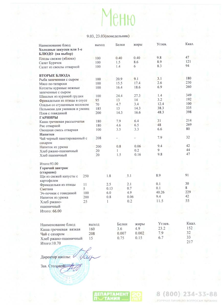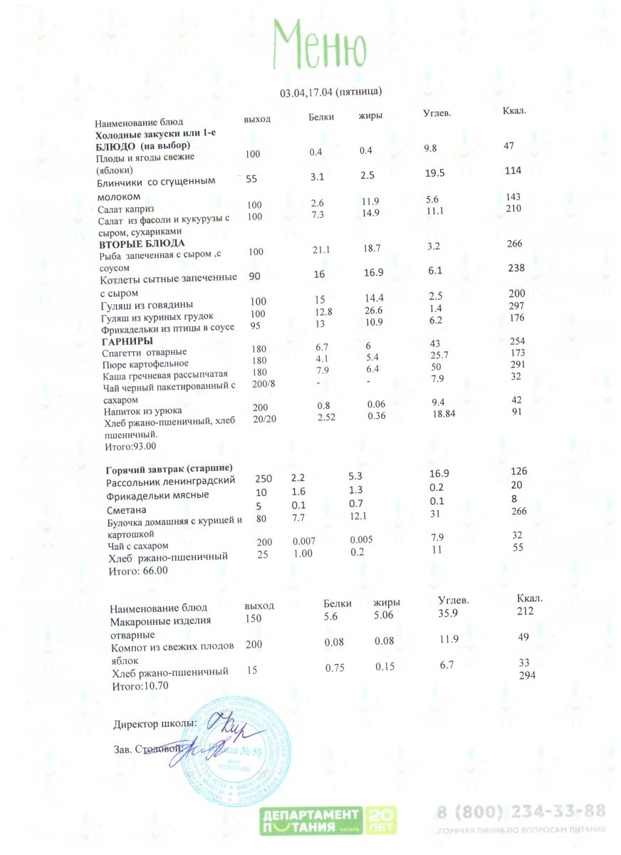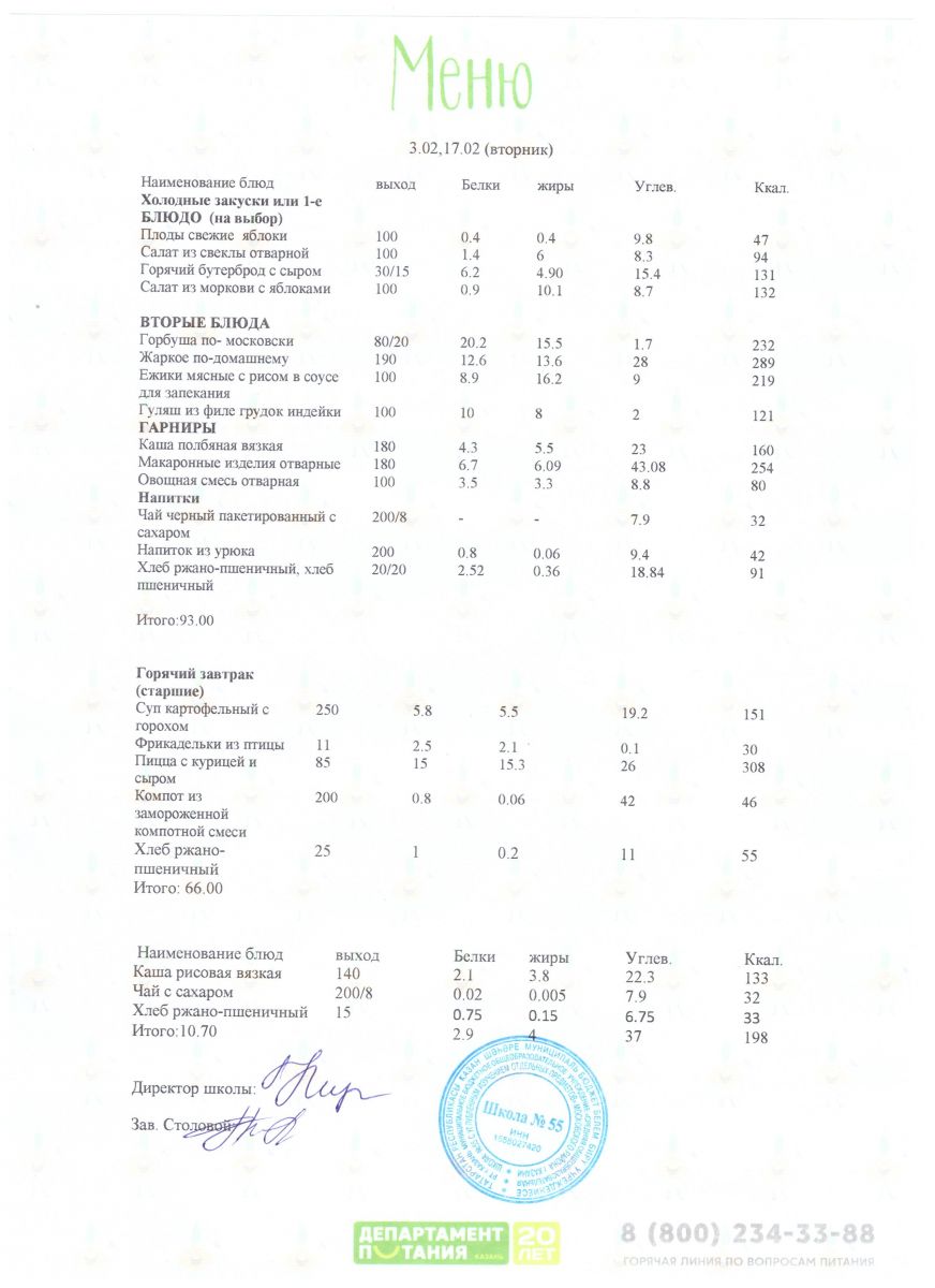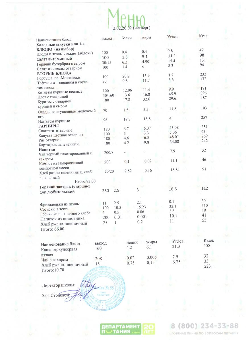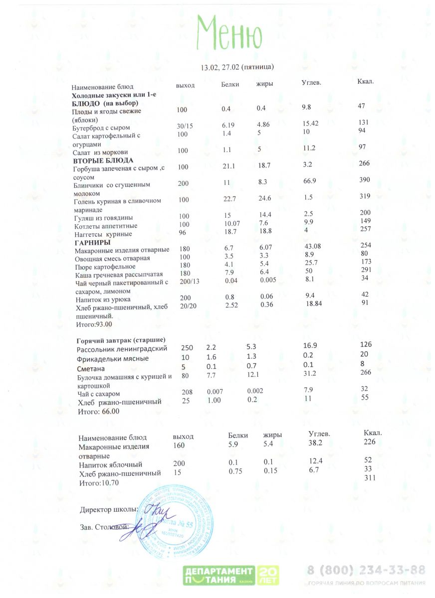 Меню 5 - 11 классы