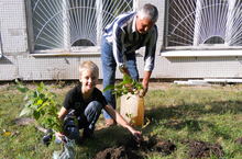 Акция озеленения пришкольного участка продолжается. Сегодня учащиеся начальной школы сажали деревья и цветы.
