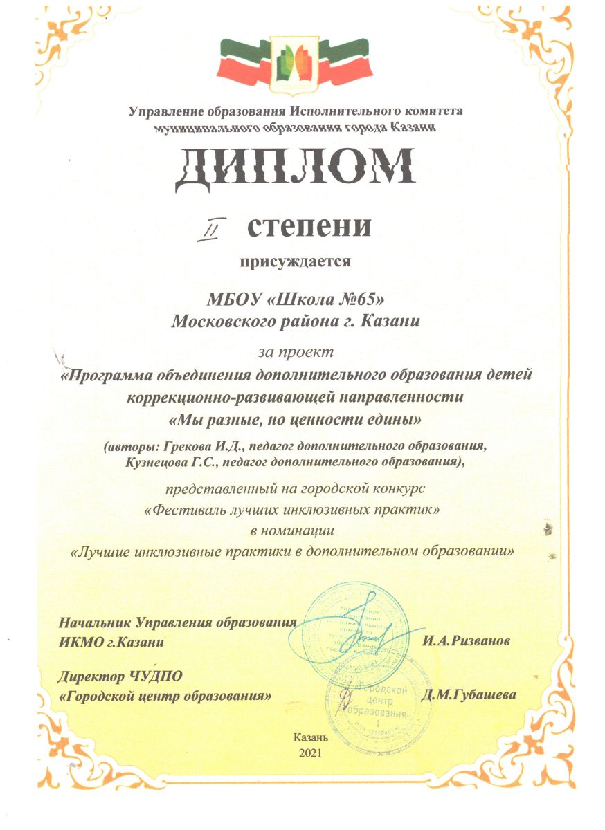 | Короткое название: | МБОУ "Школа №65" Московского района г.Казани |