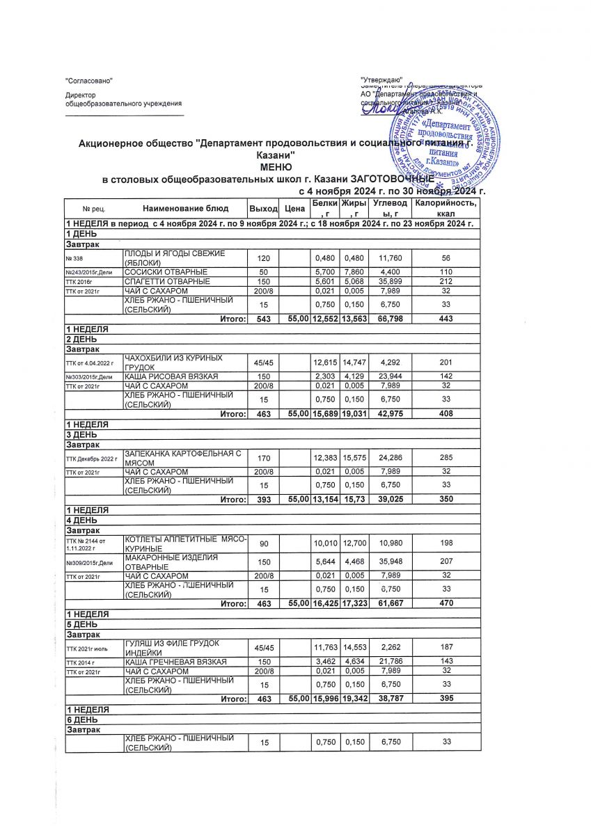 Меню скомплектованных горячих завтраков 55р лист 2