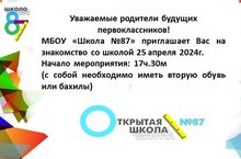 МБОУ «Школа №87» приглашает Вас на знакомство со школой 25 апреля 2024г.