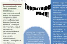 Ученики 5А класса начали выпуск газеты «Территория Мы». В декабре вышел 1 номер. Юные журналисты, под руководством классного руководителя Фасхутдиновой Л.И, пробуют перо. В своих первых статьях ученики рассказывают о проведенных в первом полугодии экскурсиях, конкурсах.