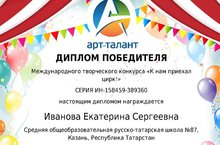 Поздравляем победителей международного творческого конкурса "К нам приехал цирк" Иванову Екатерину(2 место), Скрипченко Софию(1 место), Юминову Маргариту (1 место). Молодцы!!!