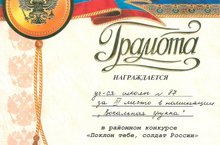 Поздравляем учащихся нашей школы, занявших 3 место в номинации "Вокальная группа" в районном конкурсе "Поклон тебе,солдат России"