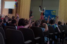 В пришкольном лагере дети посмотрели спектакль "подарок к дню рождения"