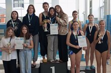 Команда девушек нашей гимназии в составе Поймаловой Дарины, Одинцовой Софии, Якуповой Айсель, Руденченко Яны - заняла 1 место в Спартакиаде школьников по плаванию!!!