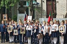 Учащиеся и учителя минутой молчания почтили память погибших, возложили цветы к памятнику, многие принесли портреты своих победителей для участия в школьном шествии "Бессмертный полк"