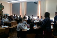 Лекцию читал сотрудник из общественной организации " Общее дело" Ринат Сафаров. Цикл лекций расчитан на несколько занятий с девятиклассниками.