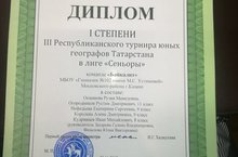 Сборная команда гимназии получила диплом 1 степени на третьем Республиканском турнире юных географов.