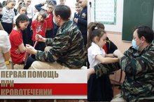 3 декабря 2020 года в рамках месячника оборонно-спортивной работы с юнармецами 4б класса проведено занятие по изучению способов остановки артериального кровотечения.