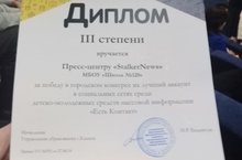 Поздравляем команду Пресс-центра "StalkerNews" с победой в городском конкурсе на лучший аккаунт в социальных сетях среди детско- молодежных средств массовой информации "Есть Контакт"...