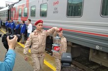 Сегодня Юнноармейцы нашей школы приняли эстафету "Вечного огня" из города Москва, который завтра будет открывать мемориал Памяти павшим в Юдино.