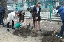 В рамках двух месячника по уборке территории в школе продолжается субботник. По периметру территории школы ведется посадка кустов, организация клумб